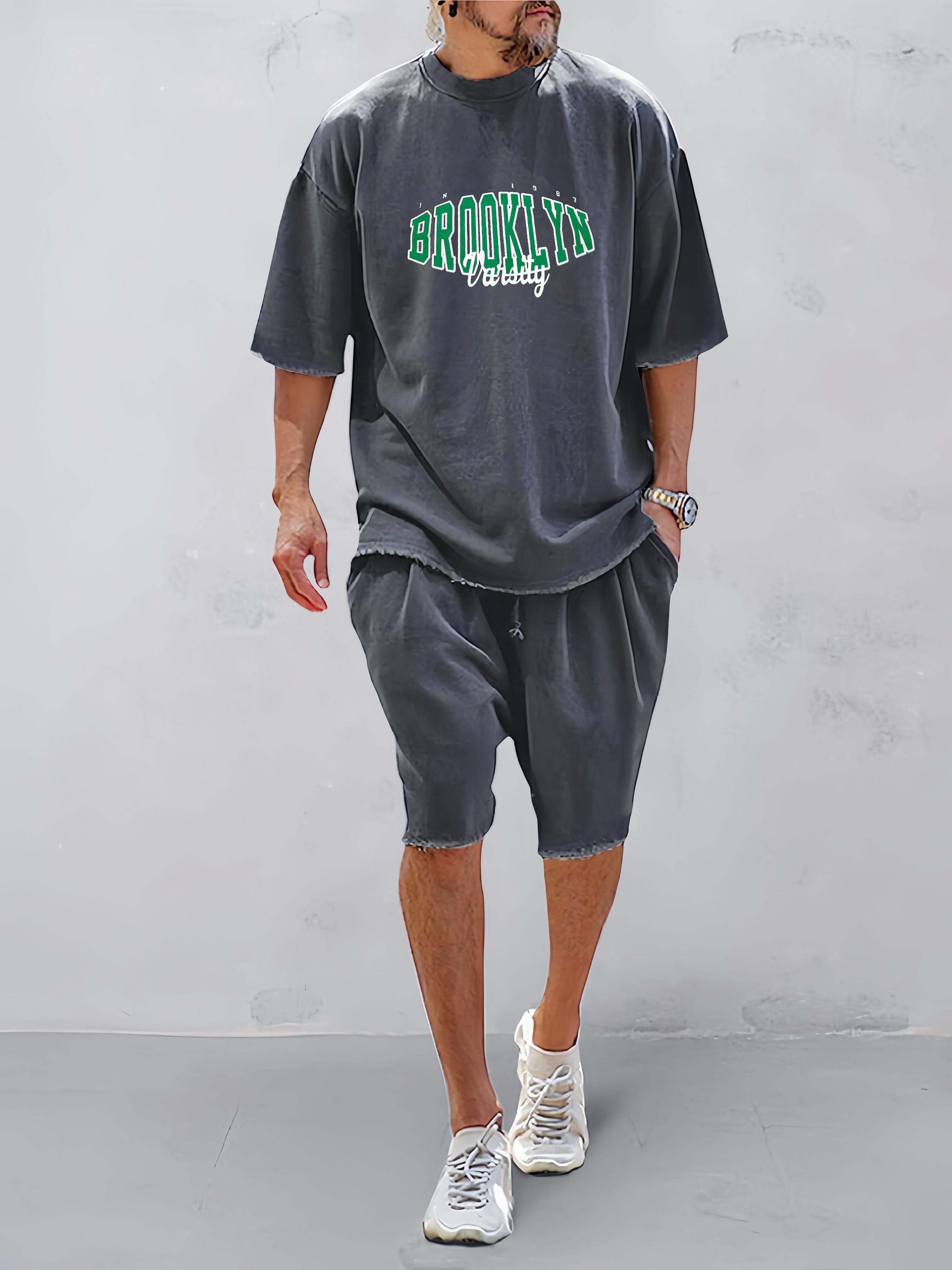 BLACKRISS™Loose Fit Word Printed Tracksuit Set