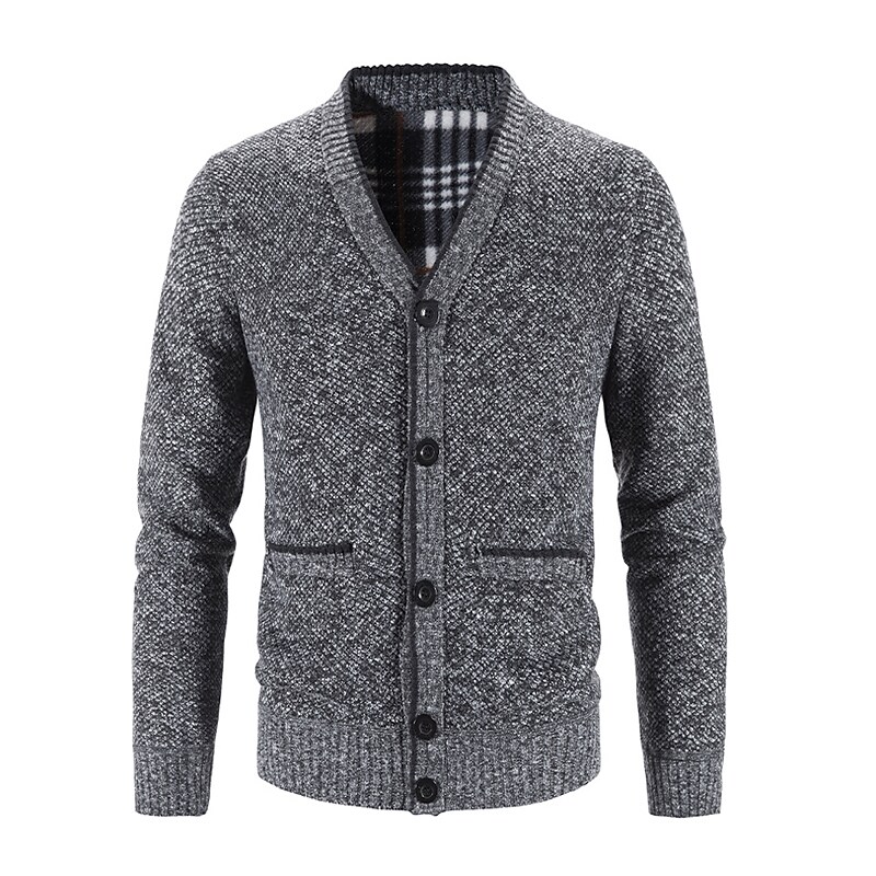Men's Knitted V-Neck Button Down Cardigan Sweater With Flannel Lining And Pockets