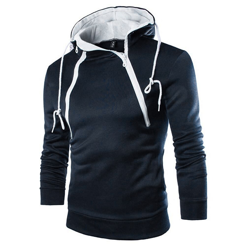 Men's Stand Collar Solid Color Zip Hoodies Sweatshirts