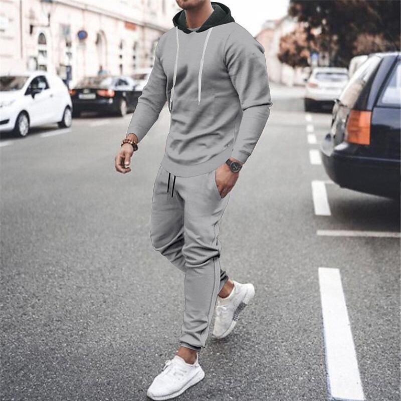 Men's Contrast Hoodied Trendy Pullover Two-piece Suits