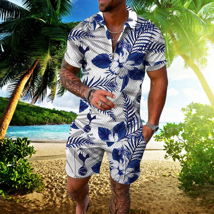 Blue Hula Polo Shirt And Shorts Co-Ord