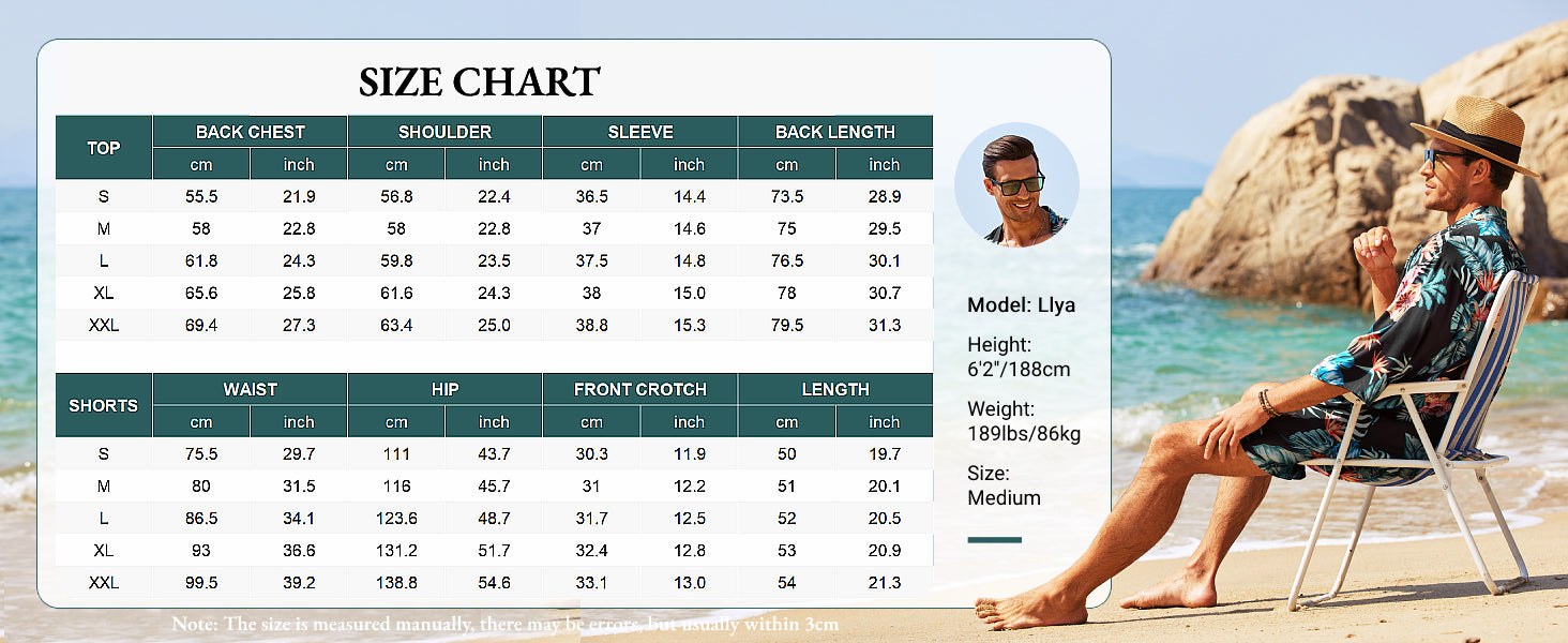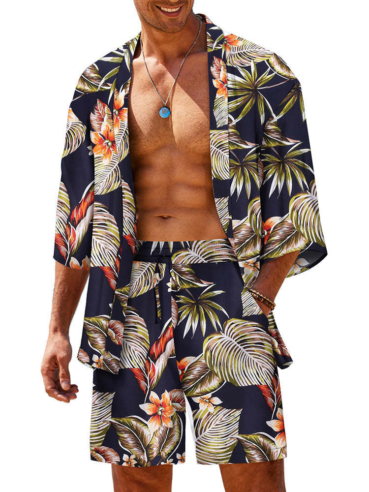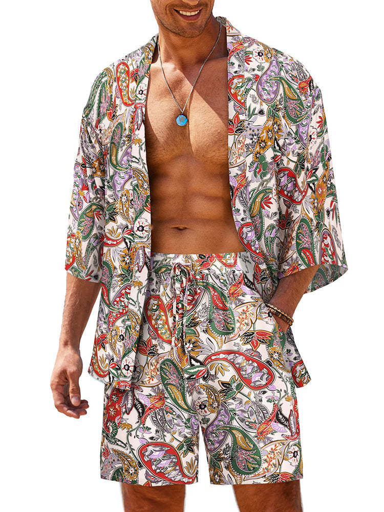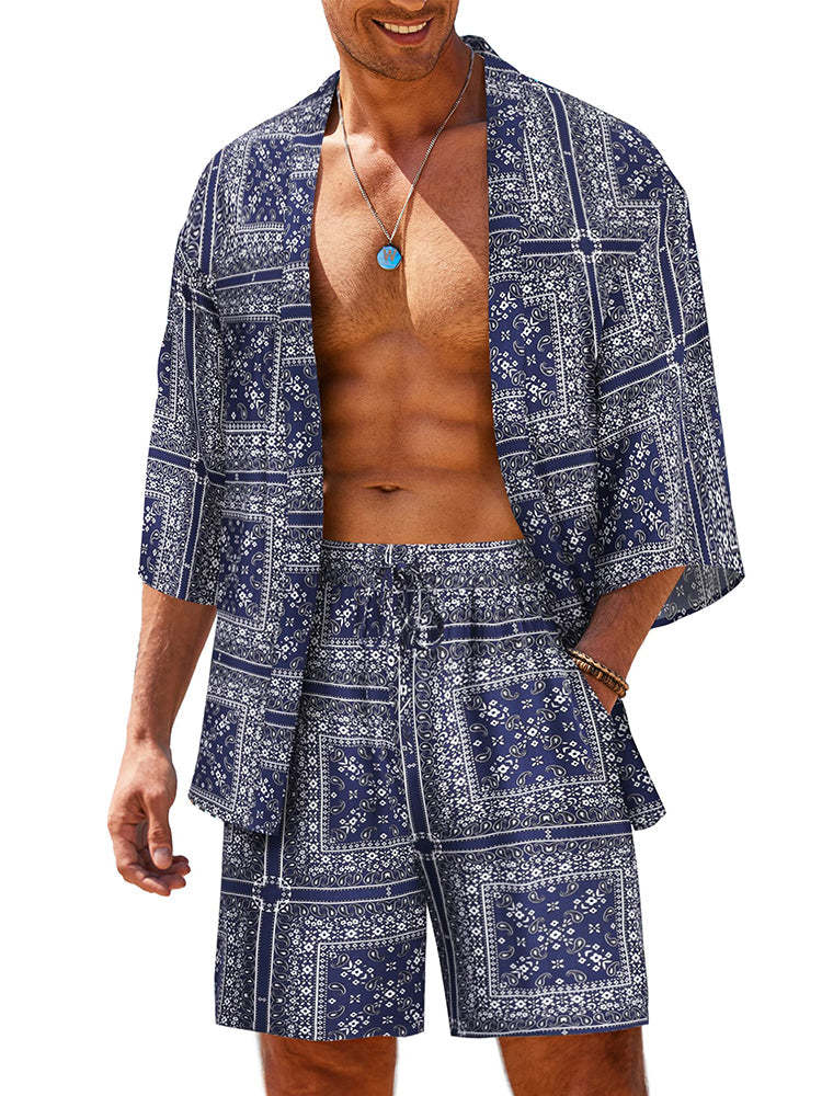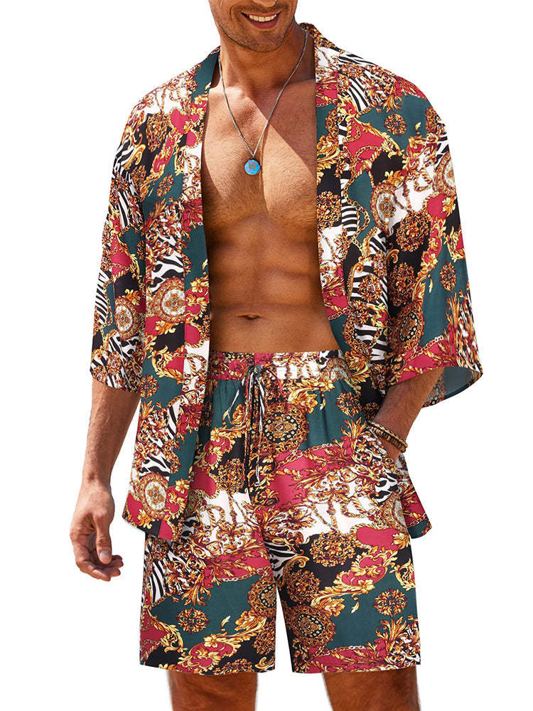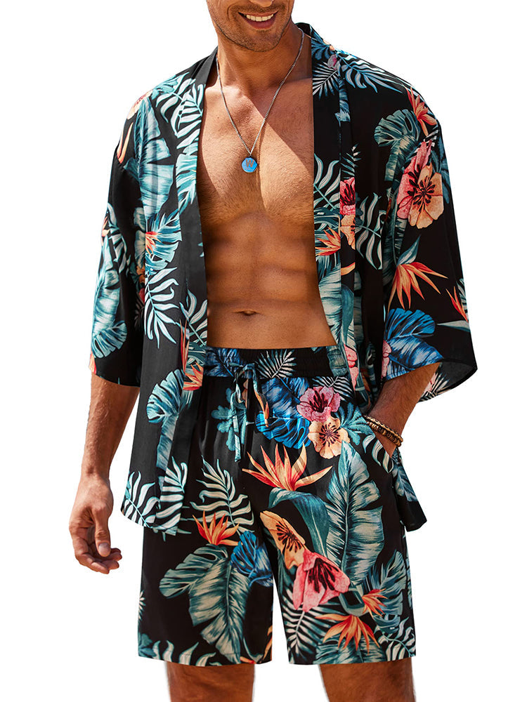 Style:?2-Piece regular fit kimono beach shirt and shorts set.