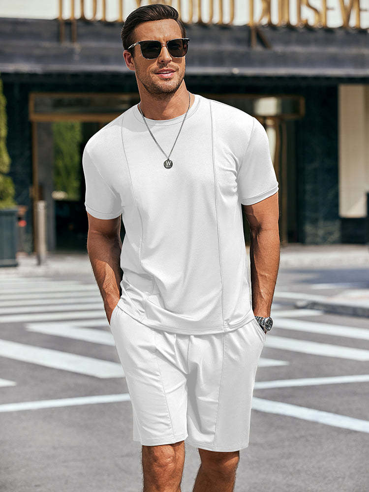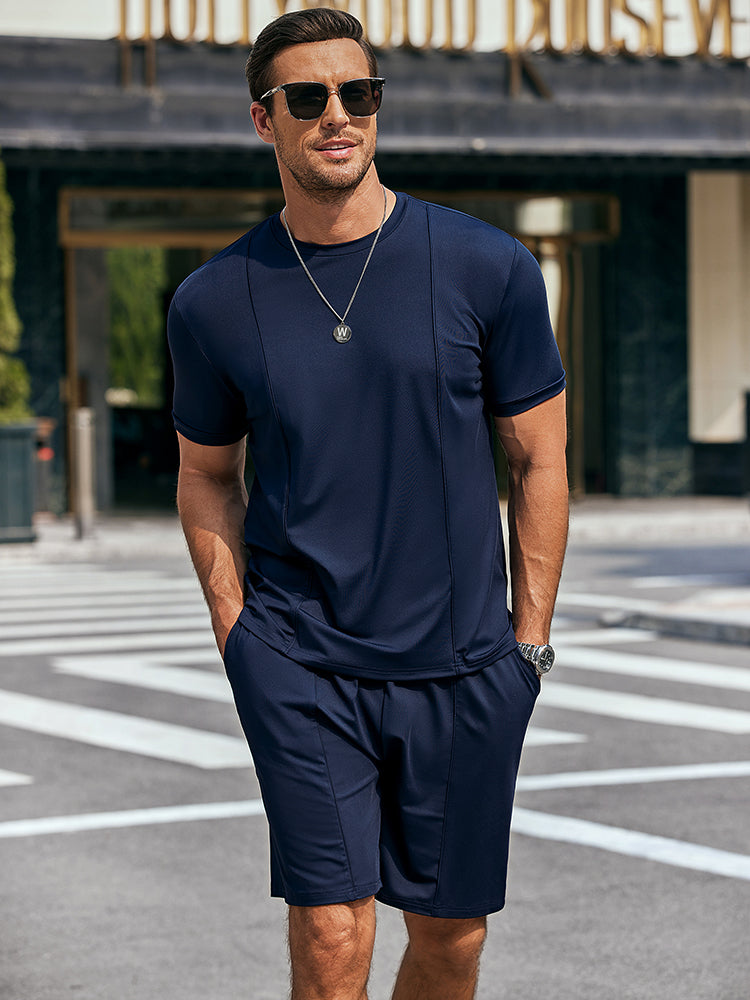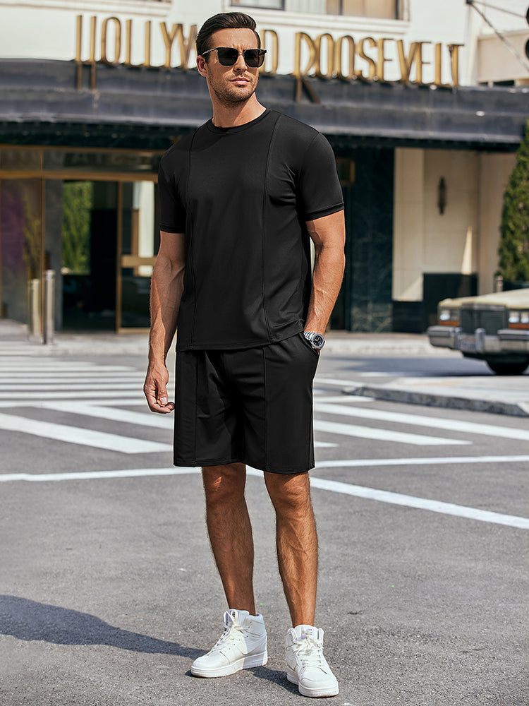 • Crew neck short sleeves t shirts,?elastic waist drawstring shorts.