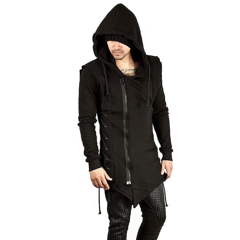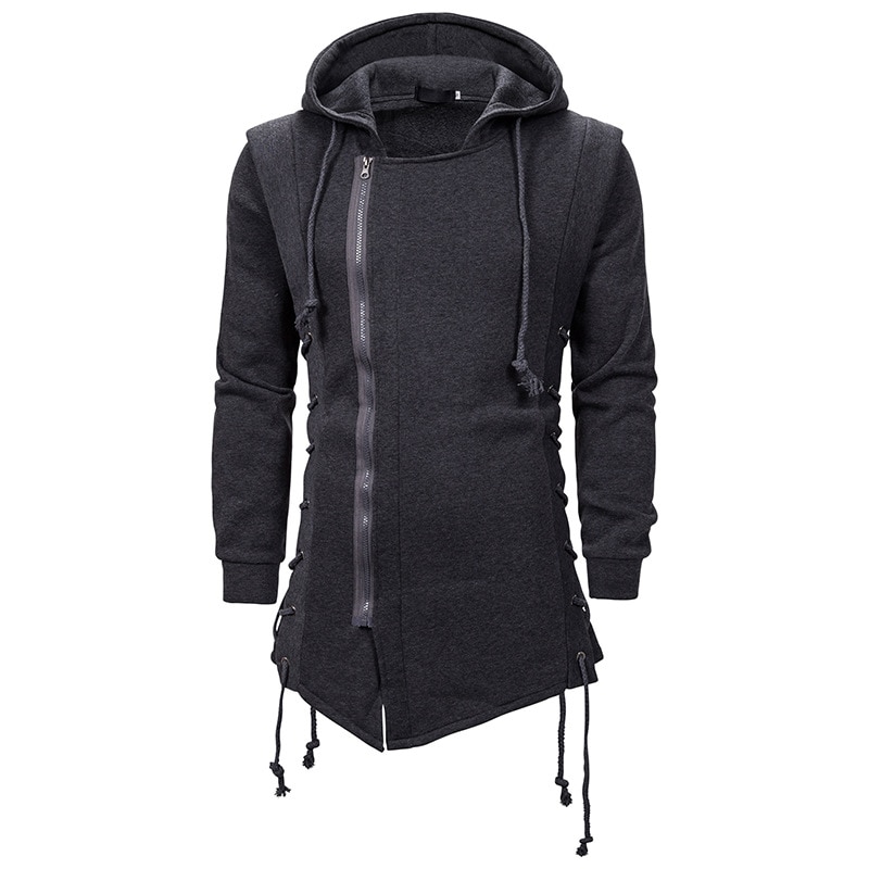 Assassin's creed sweater coat dark tie hooded loose hooded hoodie with side tie crossed dark gray black hoodi
