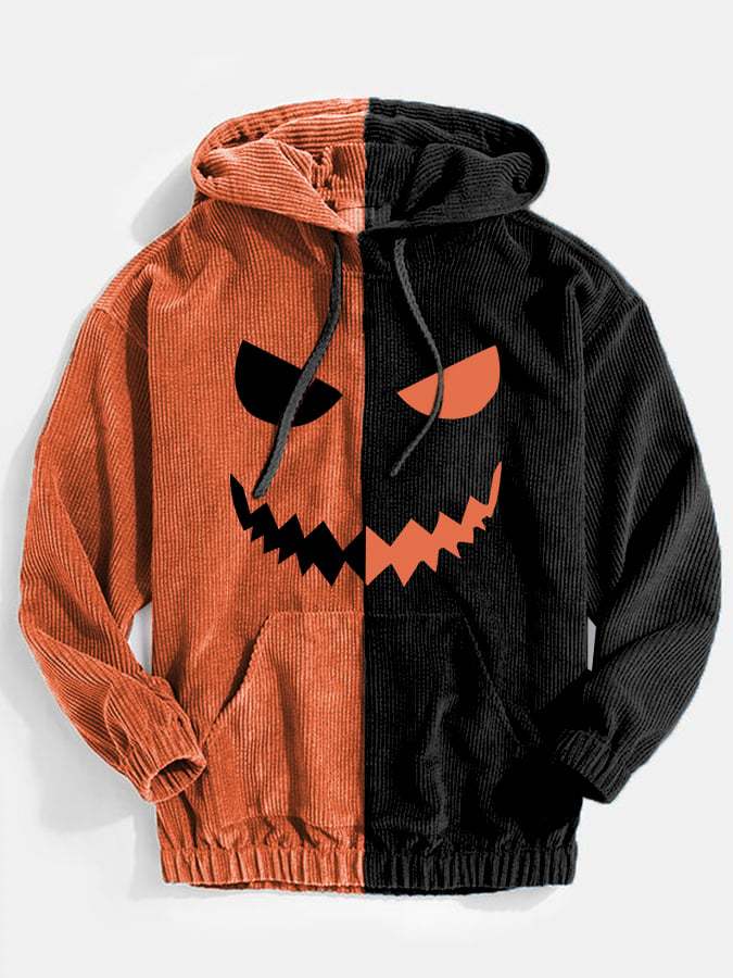 Men's Halloween Funny Face Colorblock Print Pocket Hoodie