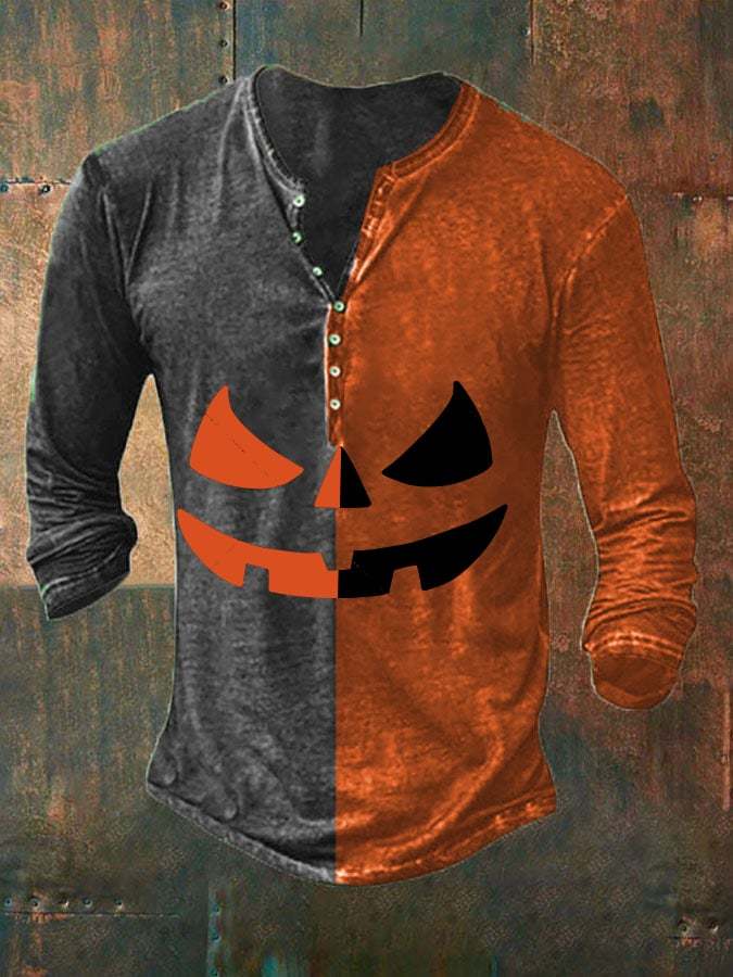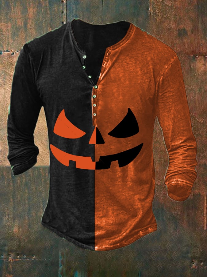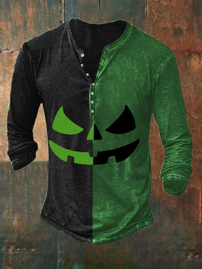 Men's Halloween Print Button Casual T-Shirt