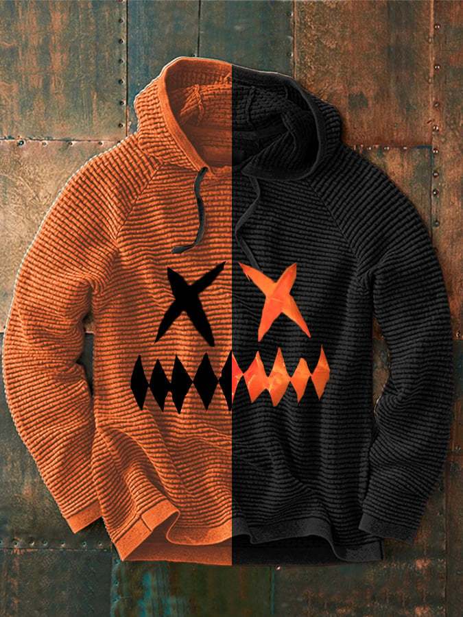 Men's Halloween Pumpkin Face Print Casual Hooded Sweatshirt