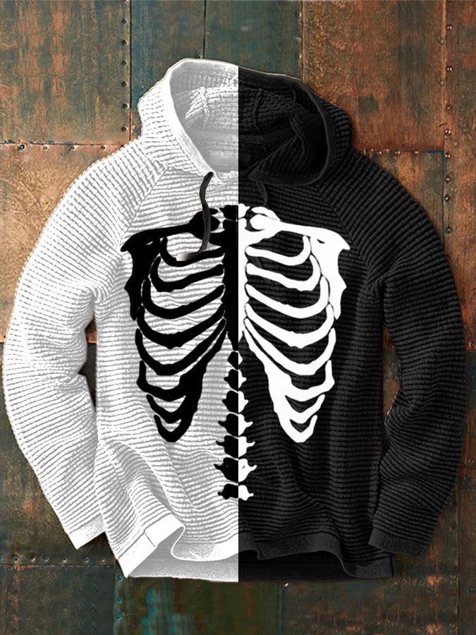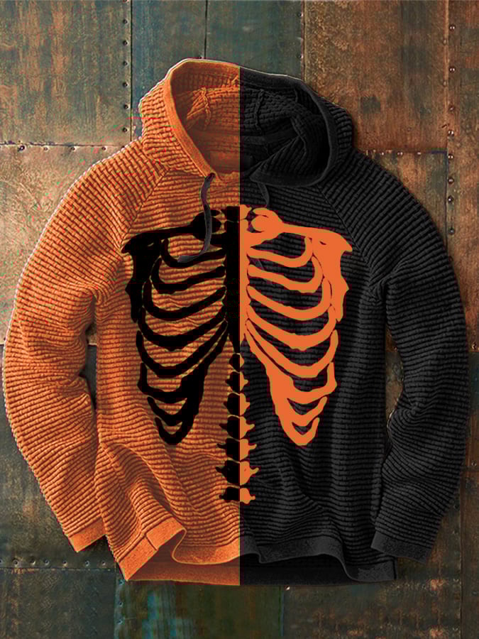 Men's Halloween Skeleton Print Casual Hooded Sweatshirt