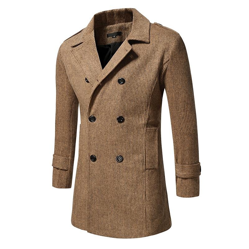 Men's Mid-Length Double-breasted Pinstripe Coat