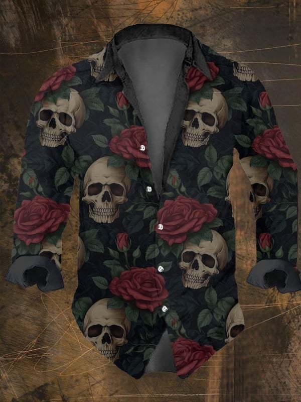 Men's Vintage Dark Skull Print Long Sleeve Shirt