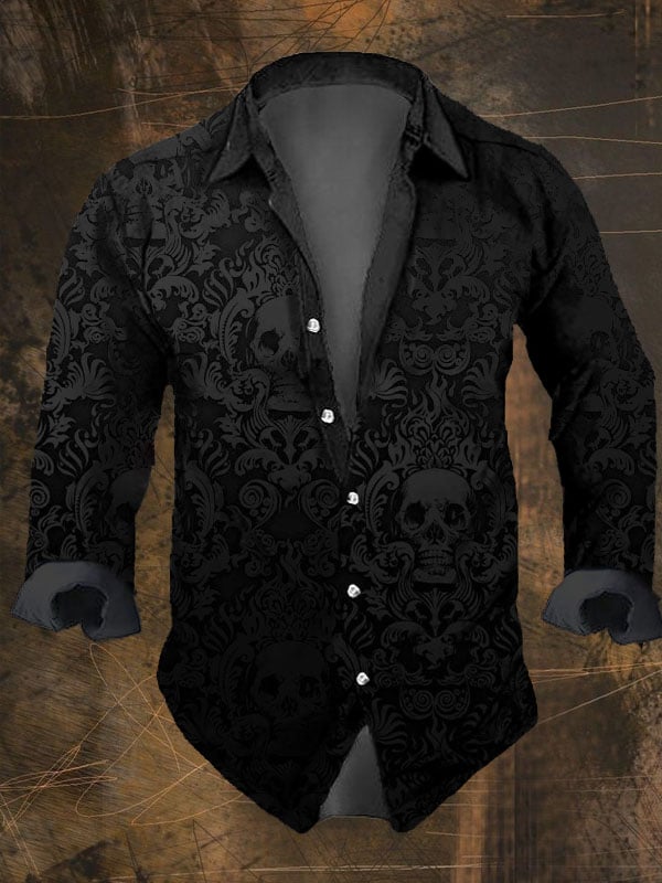 Men's Vintage Dark Skull Print Long Sleeve Shirt
