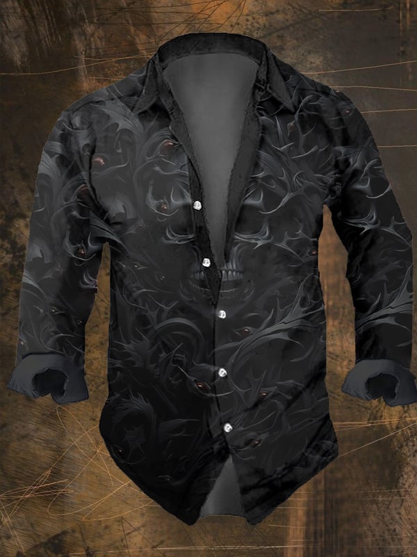 Men's Vintage Dark Skull Print Long Sleeve Shirt
