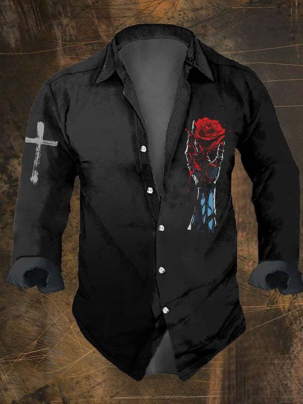 Men's Vintage Dark Skull Print Long Sleeve Shirt