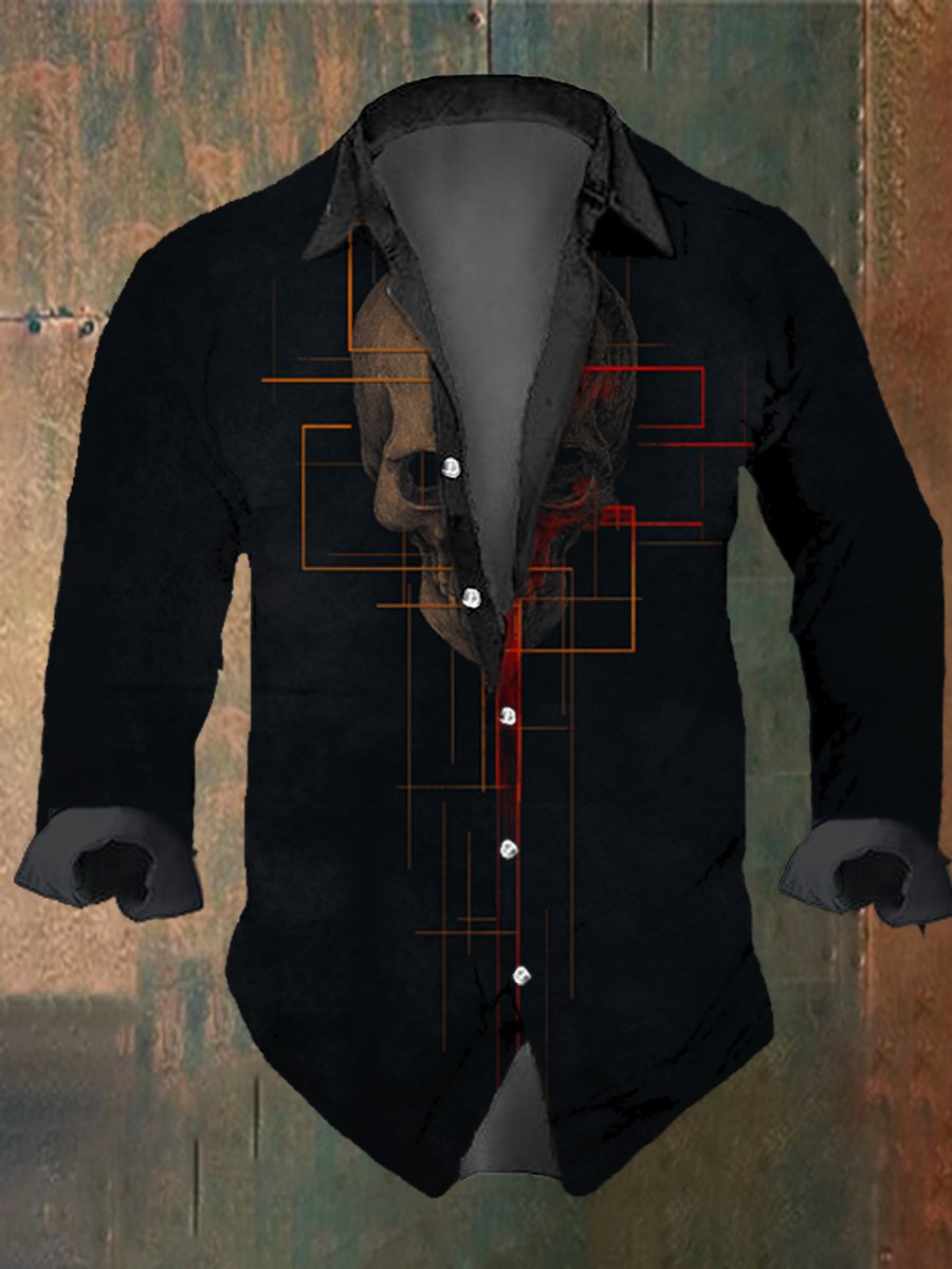 Men's Vintage Lightning Print Long Sleeve Shirt