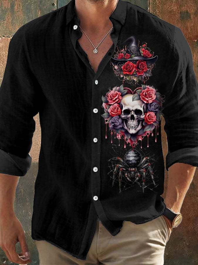 Men's Vintage Skull Print Lapel Long Sleeve Shirt