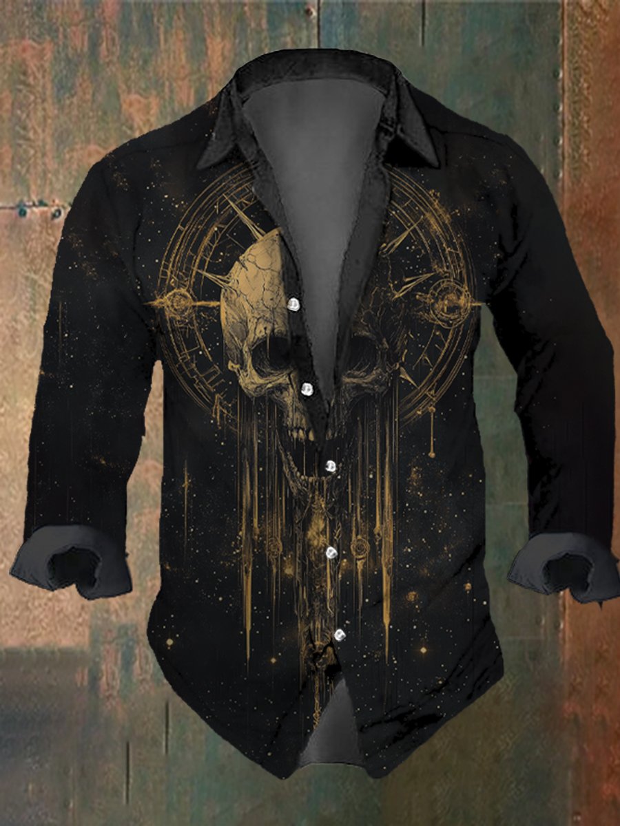 Men's Vintage Skull Star Print Long Sleeve Shirt