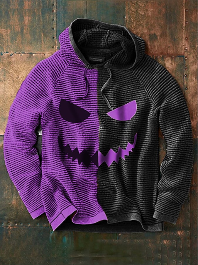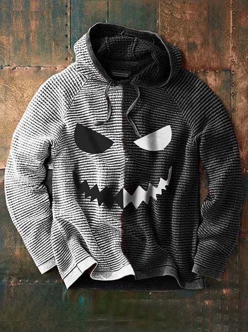Men's Halloween Contrast Hooded Drawstring Sweater
