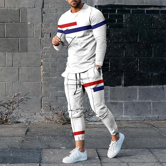 Red And Blue Contrast Casual White T-Shirt And Pants Co-Ord