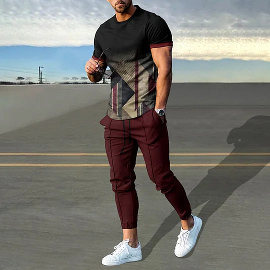 Trendy Gradient Geometry Print T-Shirt And Pants Co-Ord
