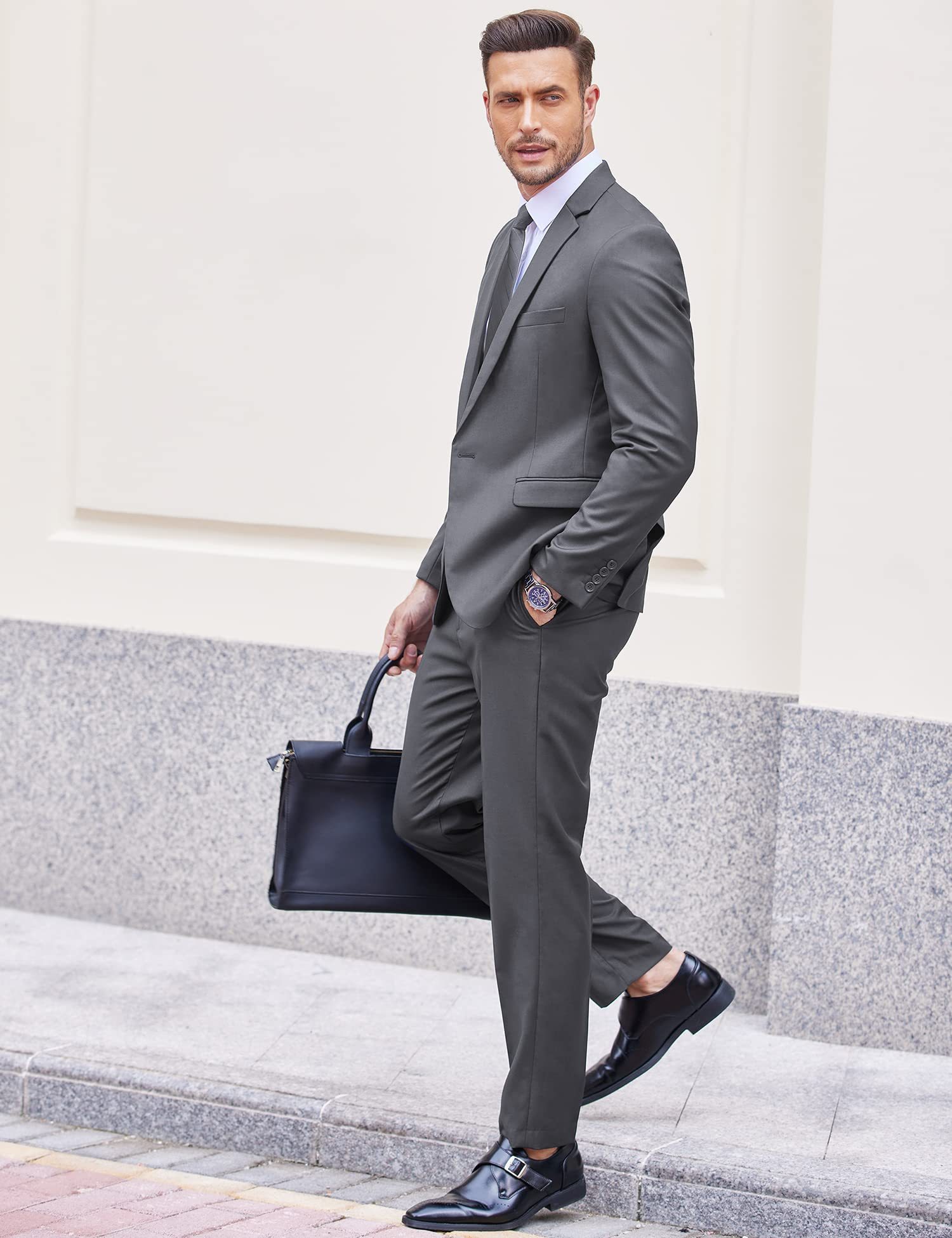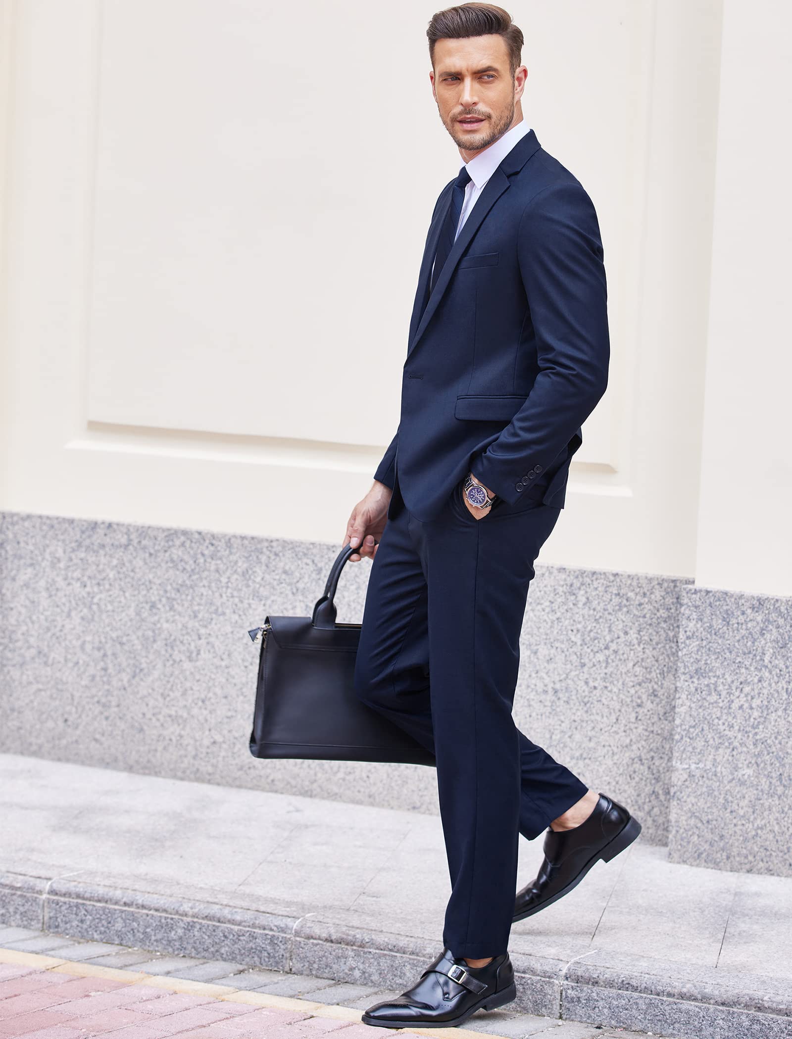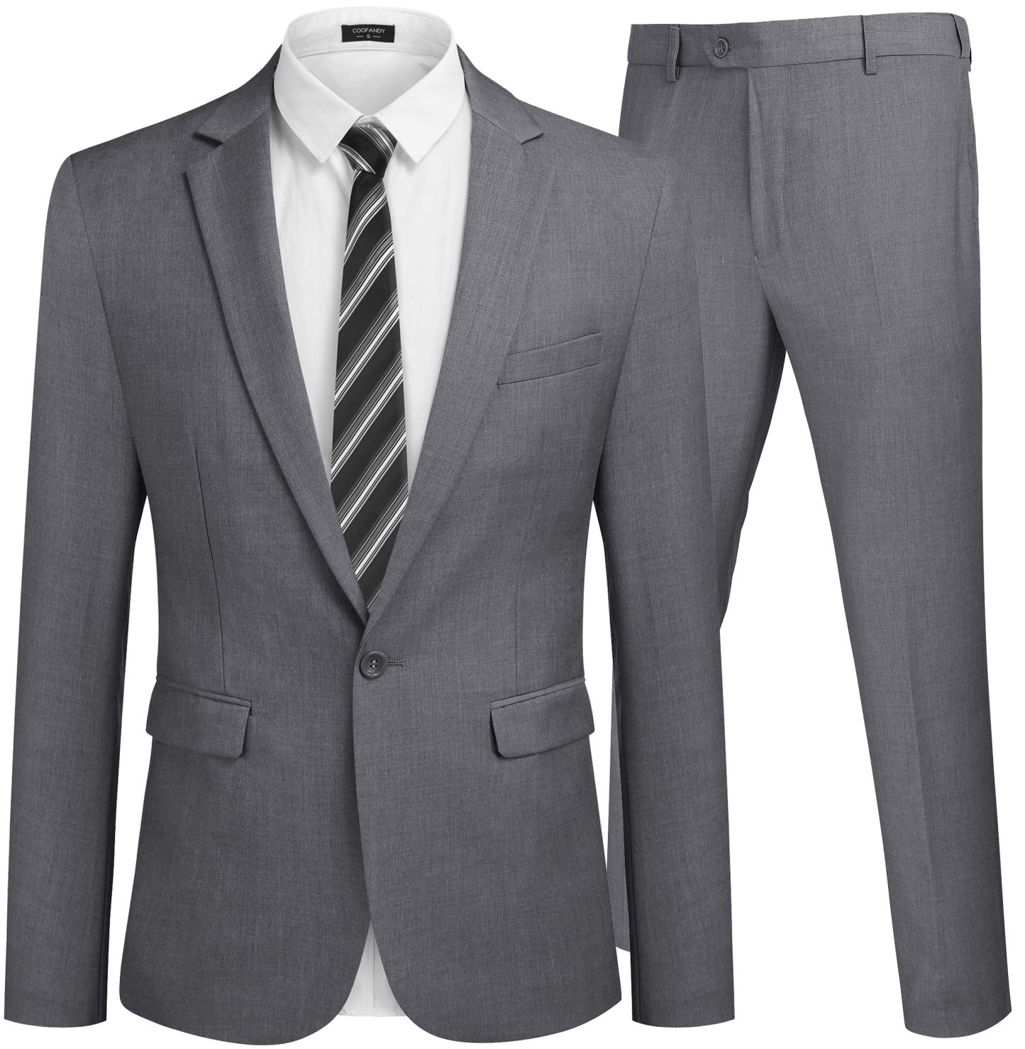 • FEATURES AND UNIQUE DESIGN This mens tuxedo suit set features with notched Lapel,wool lined collar for fixed the tie,shoulder pad will let the professional business suits look more elegant and stylish.2 flap pocket, 2 inner chest pockets and 1 outside chest pocket.Bottom of this formal suits for men comes with 2 back vent.Beside,this men's tuxedos comes with two spare buttons for accidental drops.