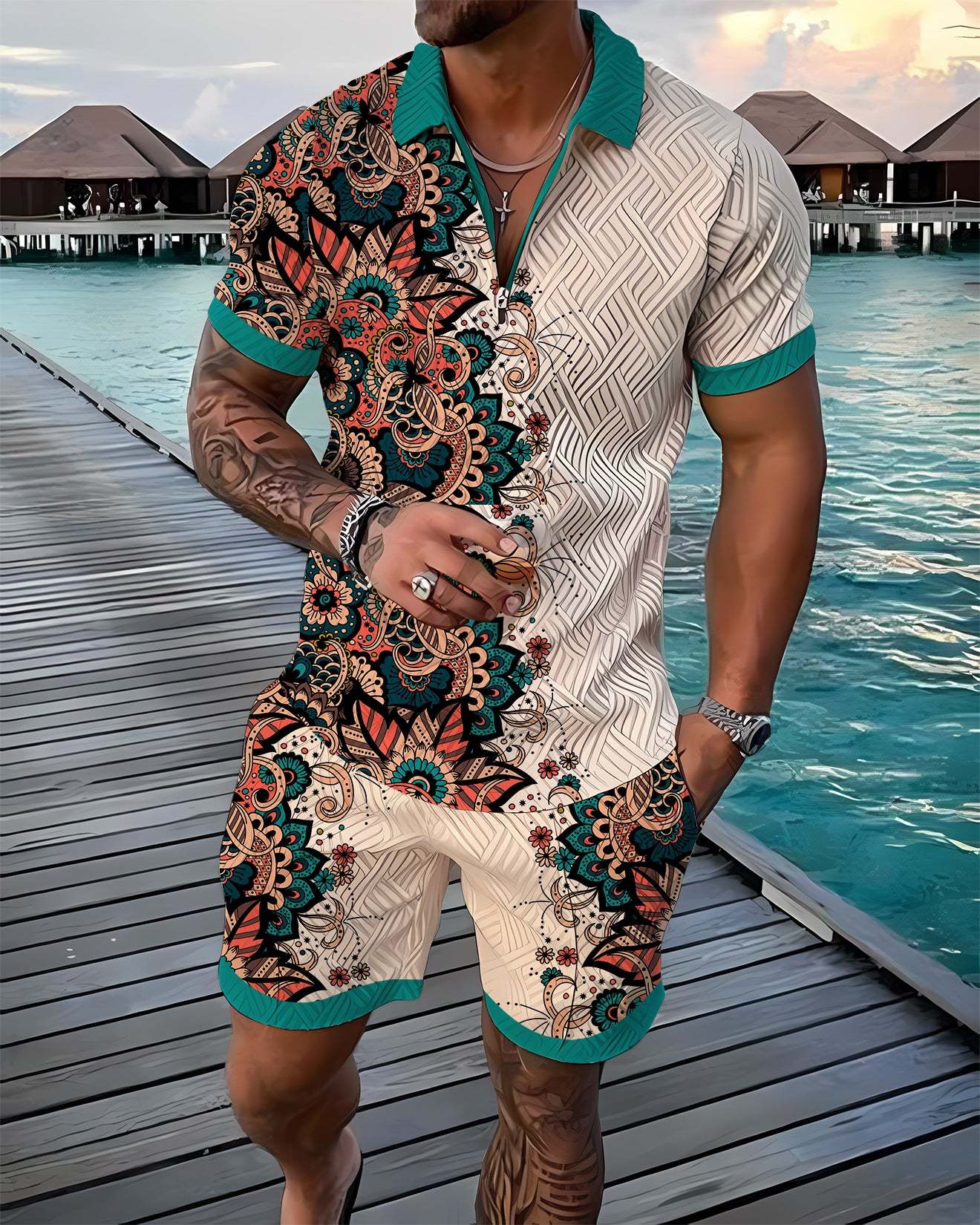 Flower Solstice Polo Shirt And Shorts Co-Ord