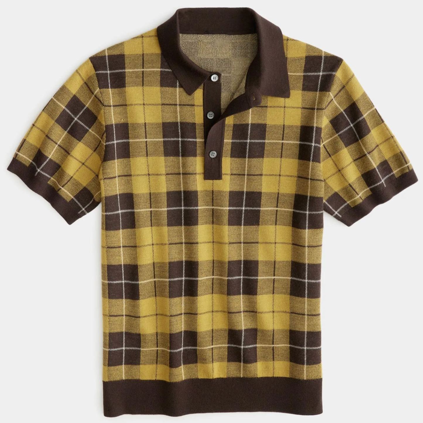 Men's Casual Checkered Jacquard Short Sleeve Knitted Polo Shirt