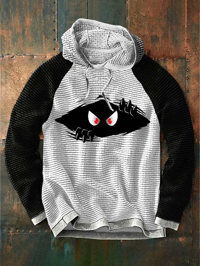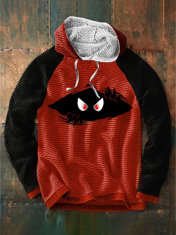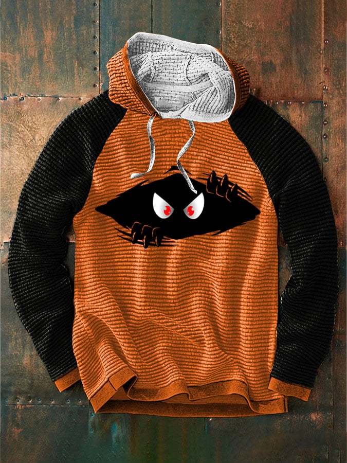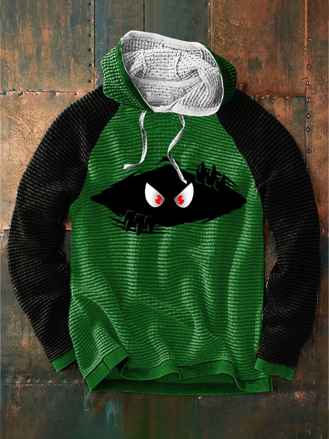 Men's Halloween Funny Peeking Monster Print Color Block Hooded Jacket