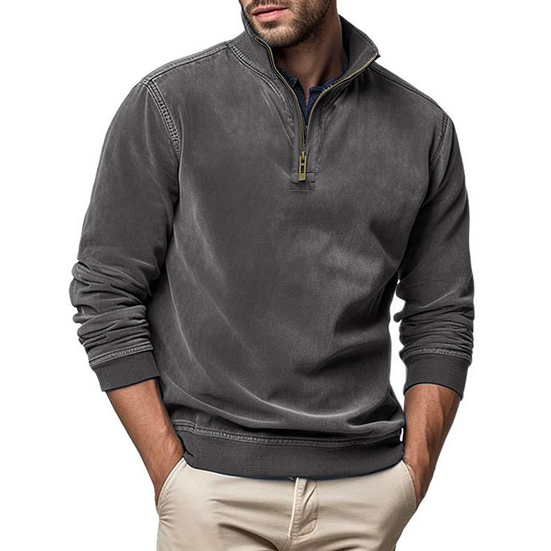 Men's Zipper Stand Collar Henley Sweatshirt